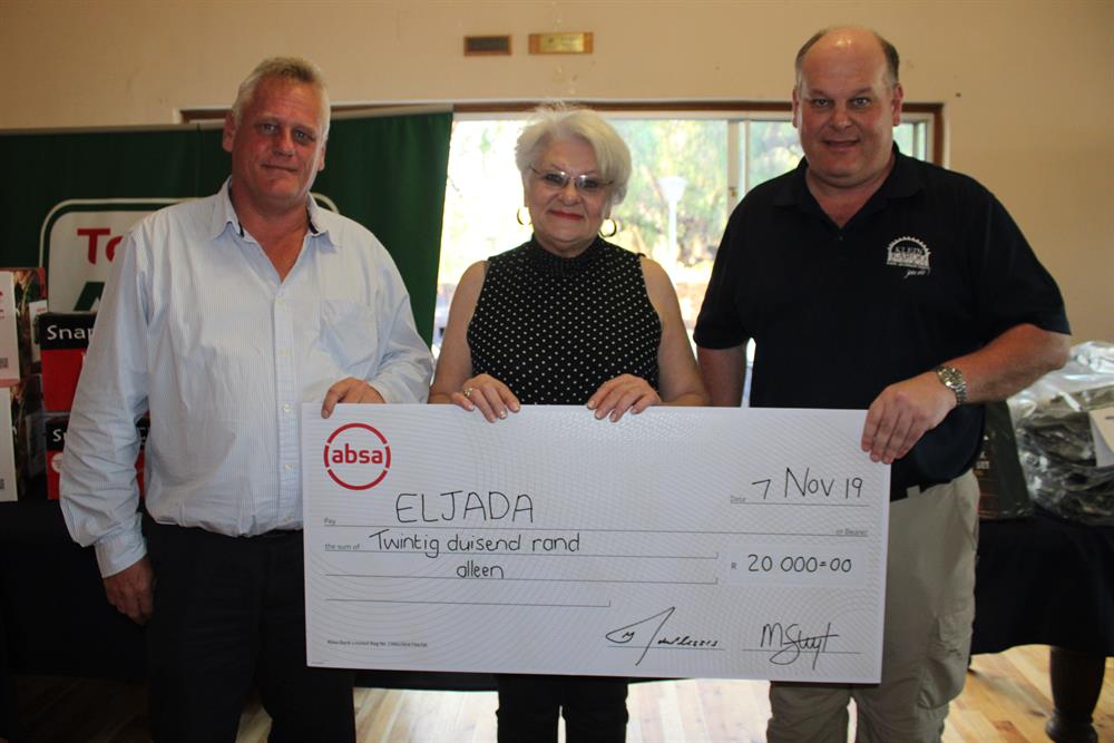 Tydens die prysuitdeling het Terblanche du Plessis (besturende direkteur van KKA) 'n tjek ter waarde van R20 000 aan Wilma Lemmer van die Eljada-nasorgsentrum oorhandig.