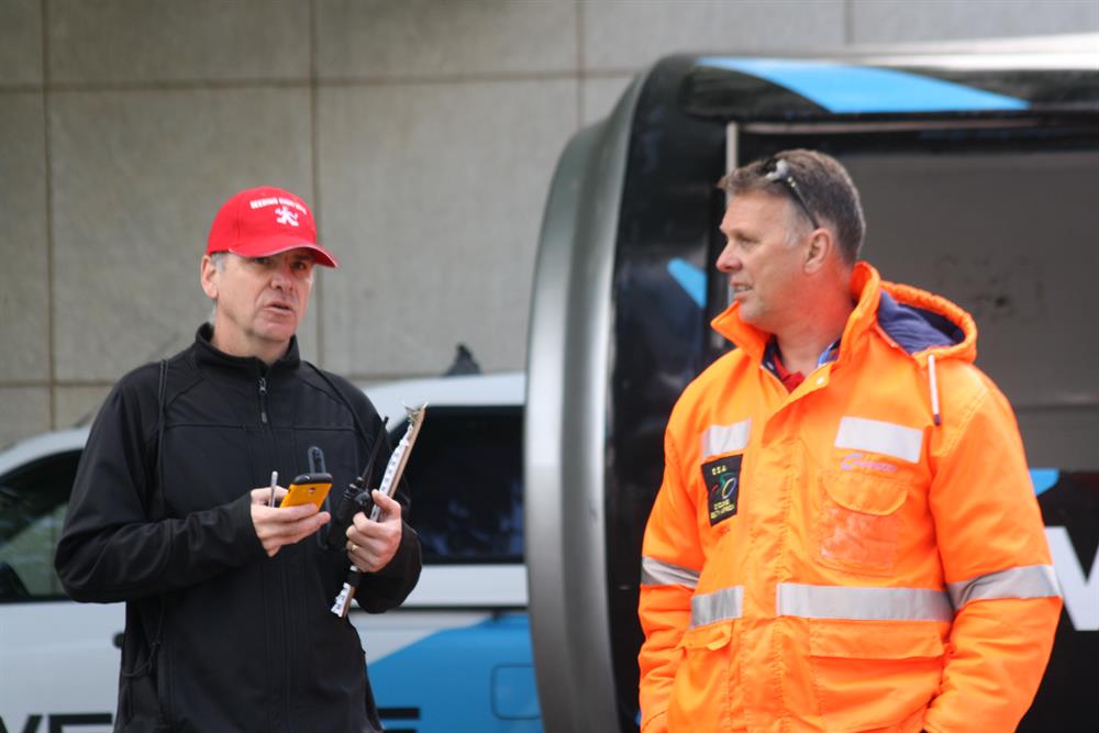 Corné Bence (regs) en baanmeester, Louis Visser, sal weer tydens die 2017 Timbercity Cycle Tour toesien dat alles volgens Fietsry-SA se reëls plaasvind.
