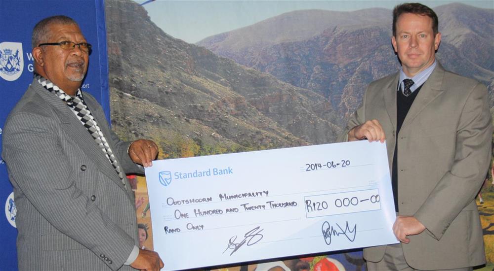 Michael Wagenaar van Oudtshoorn-munisipaliteit ontvang die borgskap van Standard Bank se Gerhard du Toit. Foto's: Jacques Swart